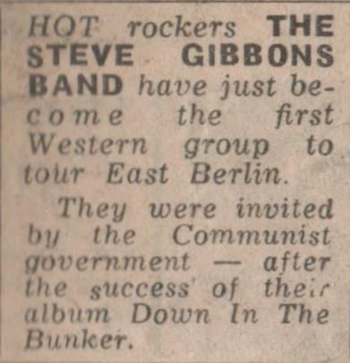 - Dann wurde die SGB 1981 auf Wegen, die heute auch für Steve Gibbons selbst nicht mehr ganz nachvollziehbar sind, die erste weiße westliche Rockband, die ausgiebig durch die DDR touren durfte – und im Folgejahr sogar nochmals eingeladen wurde.