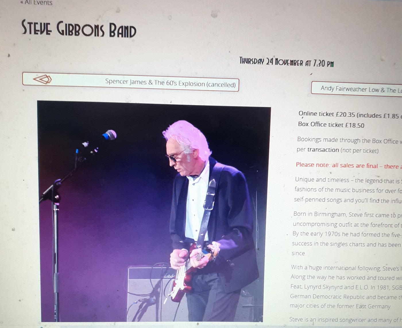 On Thursday this week, 24 November, there is a chance to see the Steve Gibbons Band in a unique ambience.